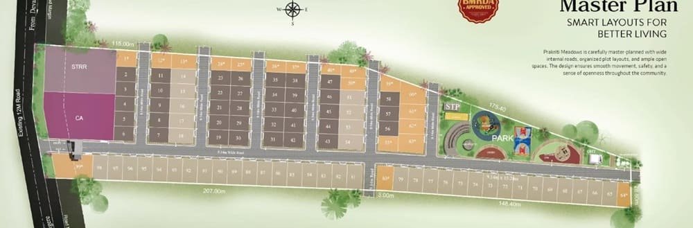 A thoughtfully planned plotted development goes beyond just splitting land into sections. It's about establishing a framework where residents can thrive comfortably for years. MSR Prakriti Meadows achieves this with its solid infrastructure planning.