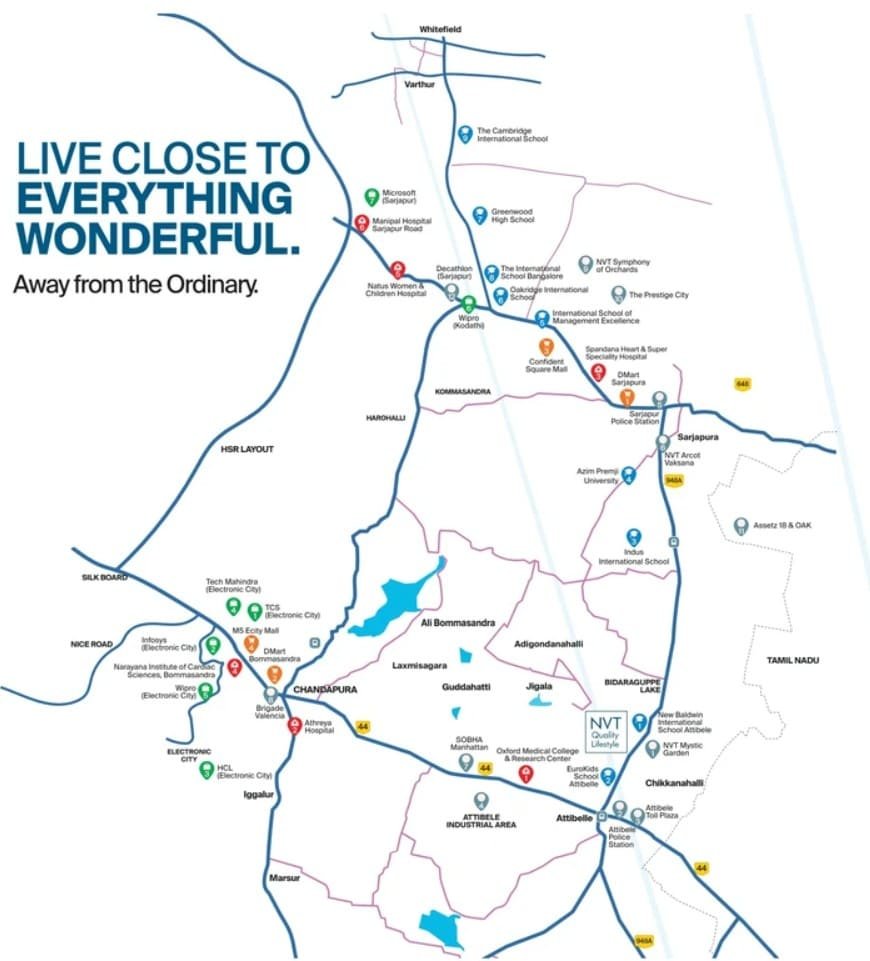 From this prime spot, residents can easily reach major job hubs like Electronic City, Outer Ring Road, Whitefield, Marathahalli, and Bellandur. Plus, the upcoming infrastructure projects in and around Sarjapur are set to boost its long-term growth even further.