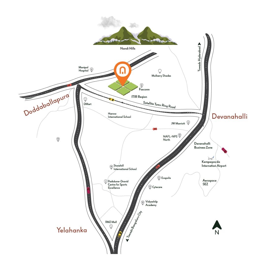 Just a quick 2-minute drive from the Foxconn facility, 7 minutes from Nandi Hills, 20 minutes from the airport, and 30 minutes from Amazon's new headquarters, Nexfield finds itself in a sweet spot between economic opportunity and natural beauty.